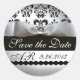 Sticker Rond NOIR ET BLANC DAMASK RIBBON MONOGRAM Gemstone