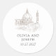 Ces autocollants simples et élégants, noirs et blancs pour mariage présentent un style classique et ancien avec une illustration de style vintage dessinée à la main d'un bâtiment de la renaissance italienne. Donnez le ton à votre mariage de luxe et raffiné d'inspiration italienne avec ce design ancien et minimaliste.