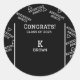 Voici une excellente façon de célébrer votre diplômé. Un autocollant rond classique noir et blanc personnalisé avec le texte « Félicitations ! Promotion 2025 ». Il a un fond noir classique avec un motif de flèche « L'aventure attend » inspirant. Affichez également votre monogramme et votre nom au centre de l'autocollant. Utilisez le modèle pour personnaliser.