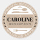 La touche finale parfaite pour un cadeau fait maison de la cuisine, cet autocollant présente un graphique circulaire à échalotes avec de charmants détails de coeur, une cuillère, une fourchette et un couteau; et texte qui dit "de la cuisine de" en haut et "fait avec amour" seul le bas, flanquant le texte personnalisable de votre prénom et de votre nom. Les graphismes blancs et noirs viennent s'ajouter à l'arrière - plan en papier Kraft beige brun pour une ambiance chaleureuse et rustique. Utilisez ce mignon autocollant personnalisé sur des bocaux de mason, des boîtes à cupcake, des sacs en papier, pour fermer l'emballage cadeau et bien plus encore!