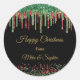 Sticker Rond Noir Glam Noël Paillettes Rouges Vertes qui Coulen