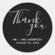 Mariage préférez les autocollants en noir et blanc. Dites merci à vos invités mariages avec ces autocollants de mariage personnalisés dans une police de texte magnifique qui disait : Merci. Personnalisez avec vos noms et votre date de mariage.