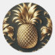 Sticker Rond Noir & Or Tropical Pineapple Luxueux Mariage