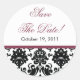Sticker Rond Noir & Plum Damask Enregistrer la date Mariage Sti