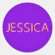 Nom de Jessica en néon rose brillant. Placez-vous sur un arrière - plan de faisceau lumineux violet.