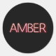 Sticker Rond Nom de l'ambre dans lumière de néon brillant nouve