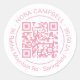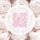 Code QR moderne, rose, rond, autocollant de nom et d'adresse avec du texte personnalisé dans une police sans serif moderne, un cadre de cercle élégant et de l'espace pour votre code QR. Changez les couleurs des éléments de conception selon vos souhaits et insérez votre code QR au niveau de la conception. y.BEE PAPERIE #ZazzleMade #RoundQRCodeSticker #RoundQRCodeBusinessSticker #PinkRoundQRCodeSticker