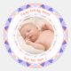 Sticker Rond Nom de photo personnalisé Âge Rose Violet Annivers