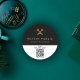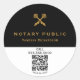 Un autocollant professionnel en noir et blanc de code QR de notaire qui comprend une clé squelette croisée dorée et une icône de stylet et le nom du notaire sur un arrière - plan noir et le code QR personnalisé.