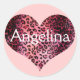Sticker Rond Nom du coeur de l'Empreinte de léopard rose