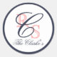 Utilisez ces étiquettes personnalisés pour sceller vos enveloppes de remerciement de mariage comme de nouveaux mariés. Nom Marié Monogrammé, Pêche, Stickers Mariage Bleu Marine. Lettres personnalisables, date mariage et jeu de couleurs.