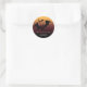 L'autocollant noir, rouge et orange d'Halloween comporte trois chauves-souris silhouettes volantes aux yeux effrayants et "merci pour un moment effrayant" et le nom de l'enfant dans la typographie moderne.