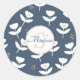 Sticker Rond Nom du monogramme floral bleu et blanc