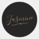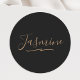 Autocollant rond Black Gold Feminine Script Name moderne. Personnalisez facilement ce sticker rond moderne élégant avec votre nom personnalisé.
