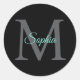 Sticker Rond Nom du script turquoise, Monogramme gris grand sur