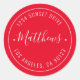 Sticker Rond Nom élégant et texte circulaire | Rouge et blanc