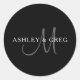 Sticker Rond Nom élégant Monogramme | Blanc noir et gris