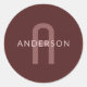 Sticker Rond Nom Monogramme d'apparence moderne | Rouge marron