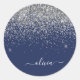 Sticker Rond Nom Monogramme Pailleté Bleu Marine Argenté Fille