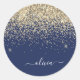 Sticker Rond Nom Monogramme Pailleté Paillettes Fillettes Bleu