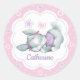 Sticker Rond Nom personnalisé Lapin dormant en rose et violet