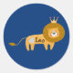 Sticker Rond Nom personnalisé mignon Lion avec couronne et bleu