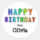 Sticker Rond Nom personnalisé Rainbow Joyeux anniversaire