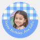 Sticker Rond Nom photo personnalisé Plaid En vichy fête d'anniv