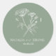 Sticker Rond Nom vert et date mariage du monogramme fleur sauva