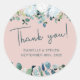 Ces autocollants de remerciement floraux romantiques et élégants constituent le sceau parfait pour votre cadeau de mariage, avec un bouquet botanique classique de feuilles d'eucalyptus aquarelles légères et aériennes, complété de fleurs blanches délicates, et personnalisable facilement avec vos noms et date de mariage.