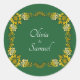 Sticker Rond Noms des mariés Émeraude Vert & Or