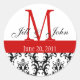 Sticker Rond Noms du monogramme Date Mariage damassé Rouge Blan