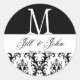 Sticker Rond Noms du monogramme mariage Date Damask Black White