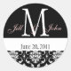 Sticker Rond Noms du monogramme mariage Date Damask Black White