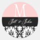 Sticker Rond Noms du monogramme mariage Date Damask Pink Seal