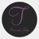 Sticker Rond Noms et Dernier monogramme initial de mauve T