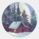 Sticker Rond NORTHERN LIGHTS & LOG CABINE par SHARON SHARPE