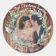 Sticker Rond Nos premiers noël ensemble photo en bois rustique