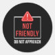 Sticker Rond Not Friendly Do Not Approach Funny Sarcastic Sayin