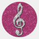 Élégant, glamour autocollant girly. Belle, éblouissante image imprimée tendance argent et diamants bling bijoux note musicale sur un arrière - plan d'image imprimé parties scintillant brillant rose chaud chic. Un cadeau mignon, classe, à la mode, élégant, joli pour elle ou tout amateur de musique.