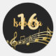 Sticker Rond Notes de musique or 16e anniversaire sur élégant n