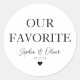 Un Sticker Mariage classique en Merci noir avec "Our Favorite" dans une police classique moderne et élégante. Vous pouvez facilement le personnaliser avec vos noms et date mariage.