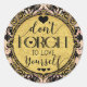 Sticker Rond N'oubliez pas de vous aimer Noir Marbre Swirl