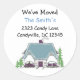 Une maison cosy avec des motifs. Un toit bleu et une porte d'entrée violette. Une façon amusante de partager votre nouvelle adresse. Customisez avec votre nom de famille et votre adresse selon vos besoins.