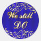 NOUS FAISONS TOUJOURS autocollant anniversaire de mariage en bleu royal et or. Décor classique et texte 3D.
