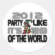 Dieu Maya coloré au centre d'un collage de mots gris et noirs orthographiant "Parti Comme C'est La Fin du Monde 2012". Humour parfait jouant sur la théorie du calendrier maya