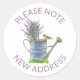 Alerte de nouvelle adresse rustique - idéal pour les scellés d'enveloppe ou comme autocollants pour votre correspondance pour attirer l'attention sur votre changement d'adresse. L'aquarelle est décorée d'une canette d'arrosage chaleureuse et pittoresque avec des fleurs de lavande, un papillon et une adorable petite finche dorée. La typographie capitalisée est bleue et dit "S'IL VOUS PLAÎT NOUVELLE ADRESSE". Belle illustration rustique. Consultez notre collection New Address pour coordonner les envois postaux.