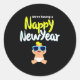 Sticker Rond Nouvelle Année couche attend Bébé drôle Hap
