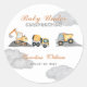 Un autocollant rond classique baby shower "Baby Under Construction" avec des nuages d'aquarelle gris doux, avec un design rêveur et apaisant. Les nuages doux apportent une touche fantaisiste, créant un cadre serein qui complète le thème tout en ajoutant un détail ludique mais élégant à vos baby showers préférés ou invitations.