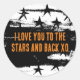 Sticker Rond Nuit étoilée. Je t'aime aux étoiles et au dos xo